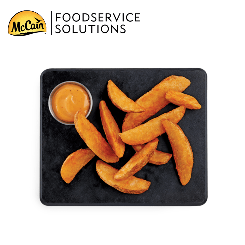 Papas cortadas en gajos sazonadas, te encantará debido a su sabor ligeramente picoso y el delicioso aroma que le proporciona la paprika.
